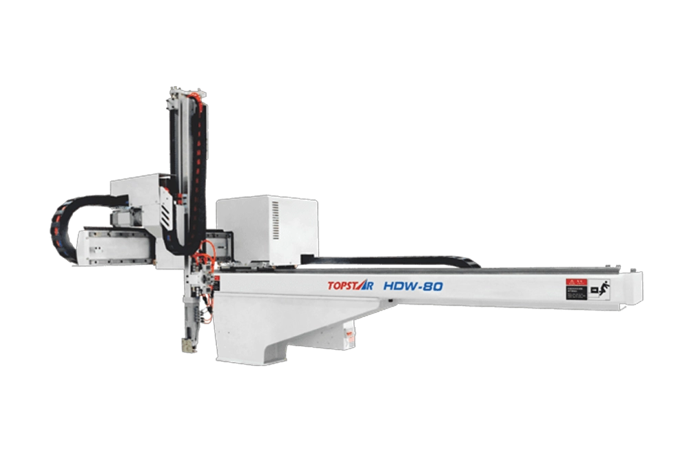 ربات تزریق پلاستیک Topstar سروو AC سری MDW نسل جدیدی از ربات های سه محوره برای خطوط تزریق پلاستیک افقی با تناژ ۷۵ تا ۱۳۰۰ تن است. این ربات با استفاده از موتورهای سروو AC پرقدرت و سیستم کنترل موقعیت هوشمند، برداشت قطعات تمام شده و راهگاه ها را با دقت و سرعت بسیار بالا انجام می دهد.